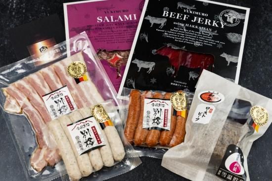 IFFAドイツ食肉加工コンテストの2019年度・2022年度に受賞した商品のセットです。60項目に及ぶ審査項目(味、形、色、食感など)で厳格に審査され、満点のみ金賞受賞するというコンテストで2019年度金賞受賞の2品目(和牛ローストビーフ200g・あまさけベーコン100g)と2022年度金賞受賞の4品目(粗挽きウィンナー150g・越の鶏&にいがた地鶏パセリウィンナー150g・清酒ジャーキー30g・にいがた和牛入り純米大吟醸生サラミスライス50g)を詰め合わせてお届けいたします。是非、一品一品ご堪能下さい。